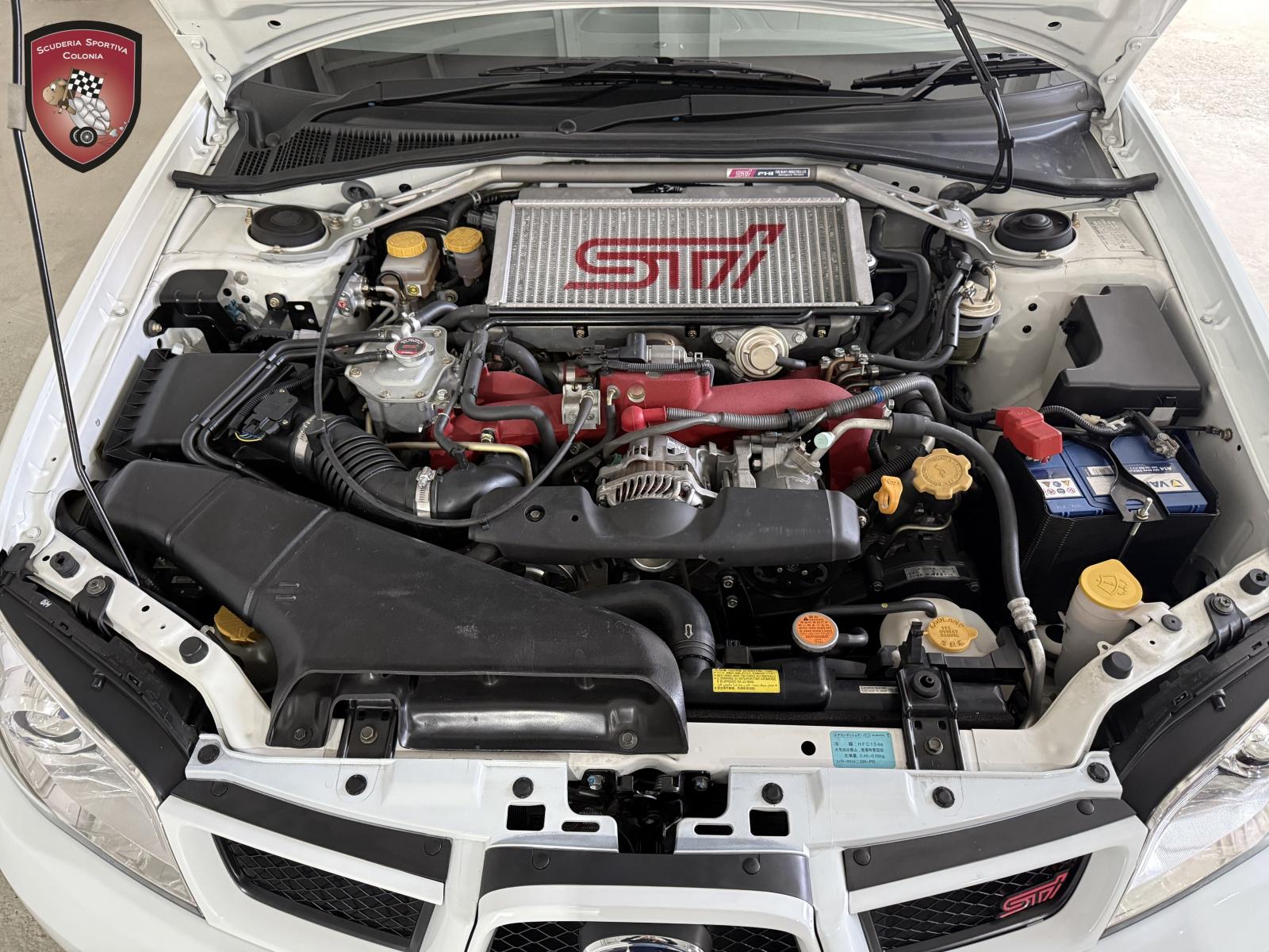 Der EJ207 im Spec C gehört zu jenen Motoren, die Subaru ihren Ruf im Motorsport gesichert haben – leichtfüßig, drehfreudig und bemerkenswert ansprechfreudig. Das 2006er Modell nutzt den raren VF36 Twinscroll-Turbolader mit Titan-Aluminium-Laufrad – ein Bauteil, das im Vergleich zum VF37 des normalen STI spürbar schneller anspricht und thermisch stabiler arbeitet. Zusätzlich erhielt der Spec C:
