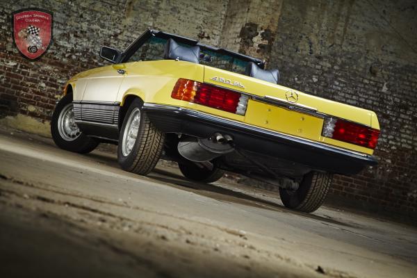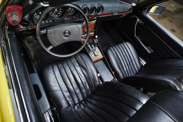 Der hier angebotene SL wurde in die Schweiz in Mimosengelb mit schwarzer Lederausstattung erstausgeliefert. Das Auto ist in einem gepflegten Zustand, die Karosserie ist nach unserer Einschätzung unfallfrei. Die Wartungsintervalle wurden penibel eingehalten. Dieser 450 SL ist gut ausgestattet und verfügt über eine wunderschöne schwarze Lederausstattung, Klimaanlage, Aluminiumfelgen, Nebelscheinwerfer, Hardtop, elektrische Fensterheber und weitere sinnvolle Extras. Der Wagen ist einmal teillackiert worden. Dieser Mercedes ist ein wunderschönes Cabriolet, mit viel Komfort und großer Langstreckentauglichkeit. Ein sehr beliebter alltagstauglicher Klassiker, der jetzt auch mit H-Kennzeichen preiswert bewegt werden kann. Der Angebotspreis ist inklusive separat ausgewiesener MwSt. Der Netto Preis (z.B. auch für den Export) beträgt € 20.590.