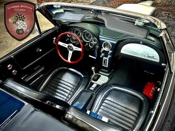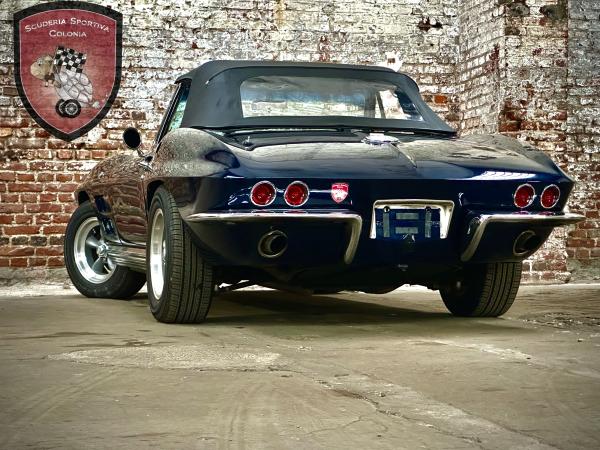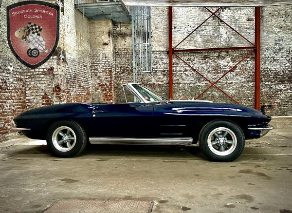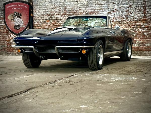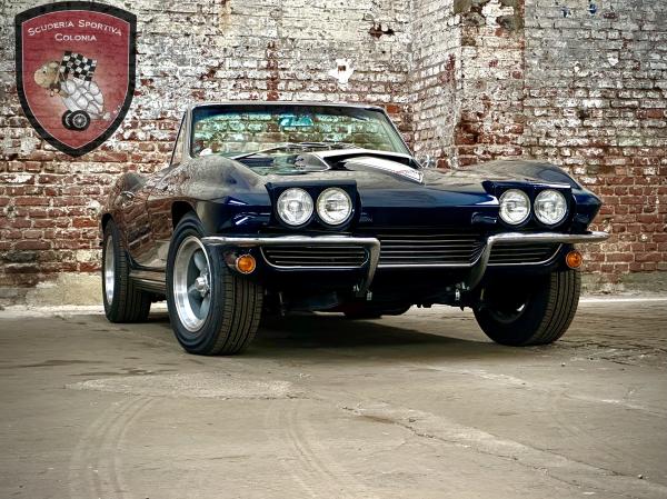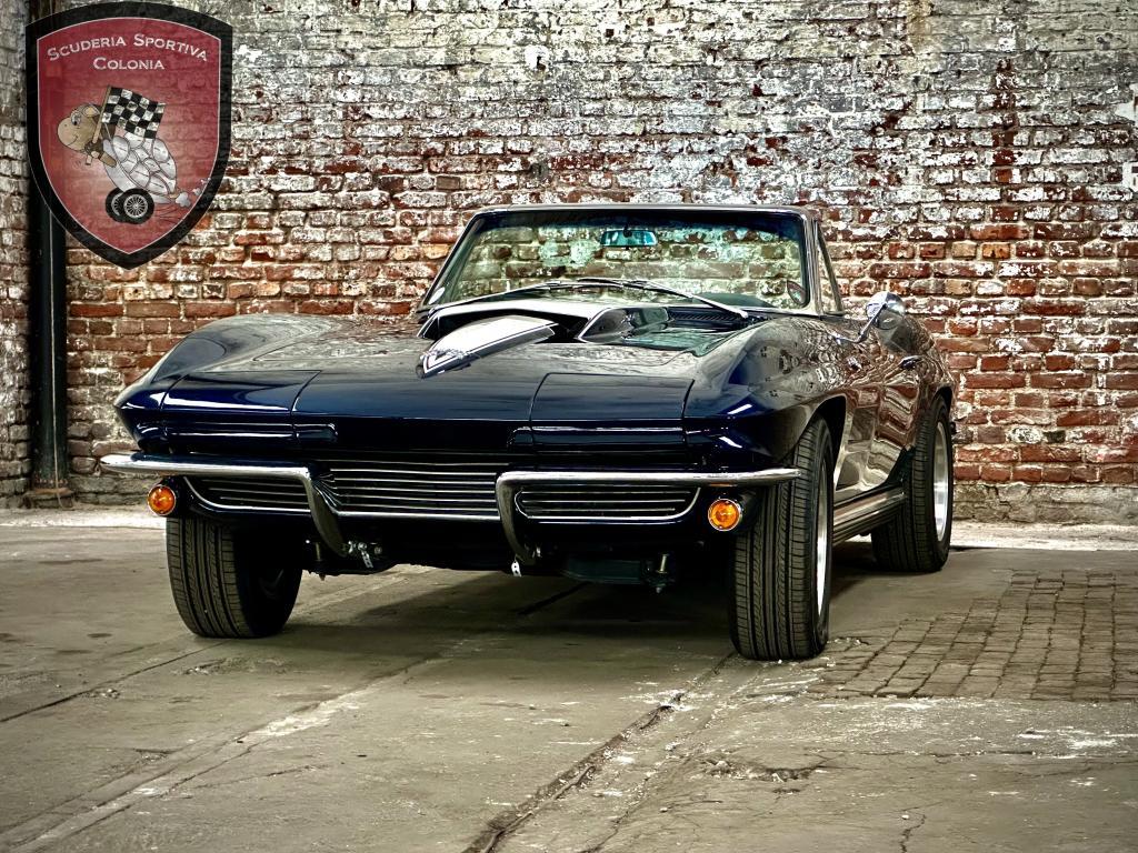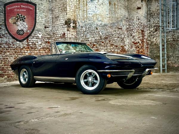 Our Sting Ray was first registered in the USA in 1964. The number of previous owners in the USA could not be completely clarified. We assume there were only 2 previous owners. In any case, in 2012 this Sting Ray was "frame-off" restored by a Corvette specialist in the USA and was given a newly built big block engine with a displacement of 7 liters in the course of the restoration. In addition, an overhauled Tremec transmission, ceramic-coated headers, Edelbrock intake manifold, Holley carburettor, aluminum valve cover, Concept 1 servo pump, aluminum cooler, brake force adjustment, new tires were installed, and the chassis was completely overhauled, the entire body was repainted, the interior was revised, new carpets were laid and a new one Hood mounted. Also on board are the light-alloy wheels with central locking, which are subject to a surcharge. 544 Nm presses on the reinforced crankshaft and requires a very sensitive gas foot, otherwise the wheels will inevitably spin even in 3rd gear. Just starting the engine gives you goosebumps. The sound experience is simply indescribable. Mucho macho drama is ignited by this stingray, which the legendary motoring journalist Fritz B. Busch described as follows: "Roll a Sting Ray down the Via Veneto in Rome at night. And you get a rough idea of how many girls there are at the time." have for you." The thought might be considered sexist today. In any case, so does the Sting Ray. In 2013, the Corvette was sold to an important collection in Germany via a specialist in England -mediated through us. The German collector has moved this Corvette a maximum of 1000 km since then. Maintenance and pending TÜV preparations were carried out by us during this time. Now, this very neat, almost new Sting Ray convertible is back on the market due to a collection change. This rocket requires a gun license.