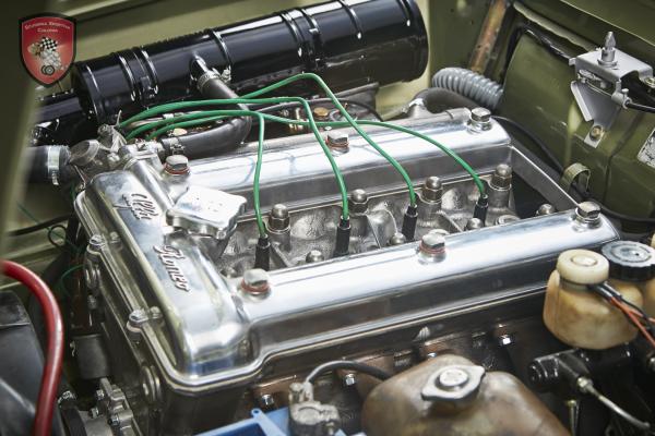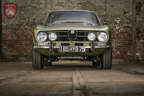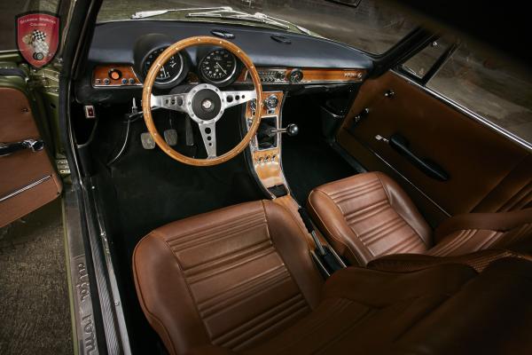 Once a year we restore an Alfa Romeo 1750 GT Veloce, among other things. This beautiful coupe designed by Bertone is one of our favorites. In sunny France we found a 1750 GT from the 2nd series. This vehicle was repainted in red by the 3rd and last owner of its original Verde Oliva Metallizzato. We have corrected this error in the course of our complete restoration. In addition to the entire body, we have of course professionally overhauled the entire engine and its ancillary units, the transmission, as well as the chassis and brakes. The entire electrical system and instrumentation were also repaired. All-round new seals, new tires and a new sports exhaust round off the offer. The interior was covered with new brown synthetic leather, the carpets and door panels were renewed. In addition, the shapely GTA rims have been fitted with new tires. As an additional "gimmick", the underbody was even painted in the color of the car and sealed with wax. No expense or effort was saved. The engine has yet to be run in. Now this beautiful coupé is ready and looks forward to being back on the road soon. This Alfa Romeo is still an absolute head turner and womanizer. This Bertone Coupé exudes typical Italian charm and flair. Bella macchina!