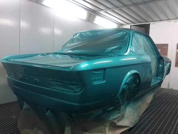 Der hier angebotene BMW E9 war in Deutschland original ausgeliefert worden. Bereits in den 90er Jahren wurde der CSI stillgelegt und wartet auf seine Restauration, die aufgrund seines Zustandes auch nötig war. Der Inhaber der Scuderia erwarb dieses Fahrzeug Anfang 2000 und lagerte ihn ein. Eines Tages sollte es so weit sein. Im Jahre 2014 begannen dann die Resaurationsarbeiten, immer wieder unterbrochen durch andere Projekte. Beim Entblättern des Fahrzeuges und Abtragen der Lackschichten kam die original Farbe "Türkis" zum Vorschein. Ein Umstand auf den selbst BMW Classic keinen Reim hat, den in den BMW Unterlagen stand eine andere Auslieferungsfarbe. Sei es wie es sei, wir entschieden uns das Fahrzeug in "065 Türkis metallic" den Wagen wieder zu lackieren.