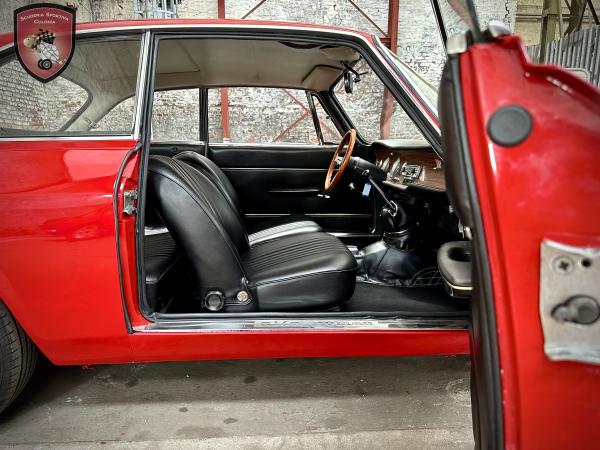The Alfa Romeo GT Junior 1300 offered here is an edge bonnet of the coveted first series. The first registration was in Germany and according to the available vehicle documents only 3 previous owners could be determined. About 15 years ago this Alfa was completely restored. A short time ago an engine and gearbox restoration was carried out by the previous owner at a specialist garage and since the engine restoration this GT has only been driven approx. 1,500 km. For reasons of convenience, the last owner is now parting with this jewel. Currently the more powerful contemporary 1.6 litre engine is installed, which with its 109 hp is responsible for a very sporty locomotion. The interior is as good as new, the roof lining has been extensively renewed.
