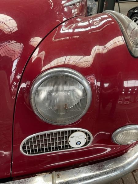 Dieser Wagen wurde am 14.11.1962 in Berlin mit dem Kennzeichen B-LD 911 das erste Mal zugelassen. Als gesuchte Besonderheit war er werksseitig mit einem Schiebedach ausgestattet, was bei voll geöffnetem Dach, ihn fast zu einem Cabriolet macht. Im Laufe der Zeit wechselte er 4 mal den Besitzer, bis er 1987 bei seinem letzten Eigentümer gelandet ist. Es handelt sich hier um einen BMW Sammler und dieses Fahrzeug war ein Bestandteil dieser Sammlung. Und er wurde auch benutzt und gefahren. Mittlerweile ist leider die Karosserie ein wenig in Mitleidenschaft gezogen. Die Kotflügel bedürfen einer Sanierung, der Lack platzt hier und da ab, der Chrom ist patiniert, die Sitze könnten einen Neubezug vertragen. Der Unterboden ist noch gut in Schuß, die Technik funktioniert, aber auch hier sollte zumindest eine große Inspektion vorgenommen werden. Kurzum eine gute Basis für eine Restauration „light“ mit anschließender Neulackierung.