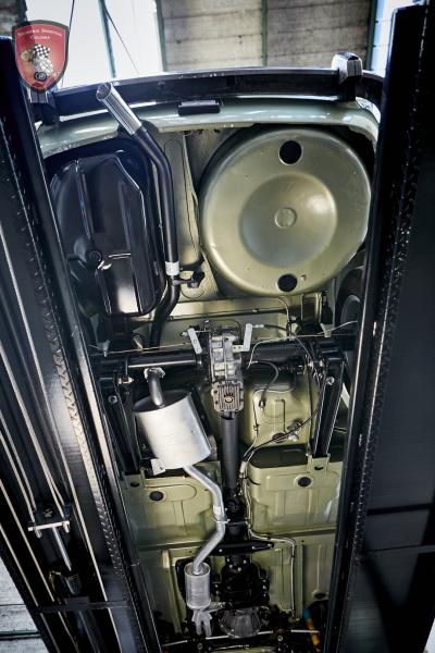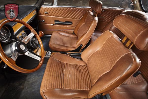 Once a year we restore an Alfa Romeo 1750 GT Veloce, among other things. This beautiful coupe designed by Bertone is one of our favorites. In sunny France we found a 1750 GT from the 2nd series. This vehicle was repainted in red by the 3rd and last owner of its original Verde Oliva Metallizzato. We have corrected this error in the course of our complete restoration. In addition to the entire body, we have of course professionally overhauled the entire engine and its ancillary units, the transmission, as well as the chassis and brakes. The entire electrical system and instrumentation were also repaired. All-round new seals, new tires and a new sports exhaust round off the offer. The interior was covered with new brown synthetic leather, the carpets and door panels were renewed. In addition, the shapely GTA rims have been fitted with new tires. As an additional "gimmick", the underbody was even painted in the color of the car and sealed with wax. No expense or effort was saved. The engine has yet to be run in. Now this beautiful coupé is ready and looks forward to being back on the road soon. This Alfa Romeo is still an absolute head turner and womanizer. This Bertone Coupé exudes typical Italian charm and flair. Bella macchina!