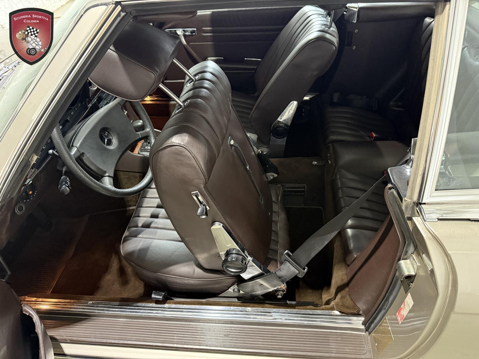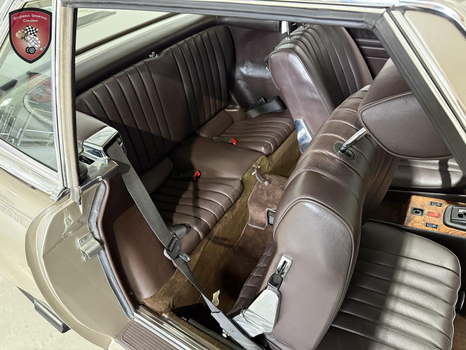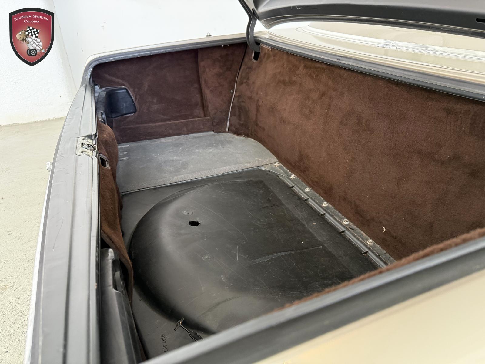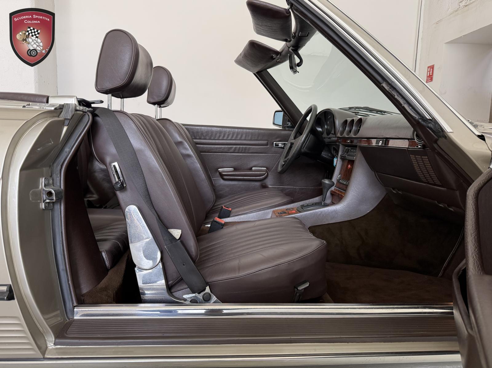 Techniquement, la 500 SL a toujours été régulièrement entretenue et séduit par son état très soigné et fiable. La peinture présente un aspect excellent, la carrosserie est droite et de très belle substance, et l’habitacle, habillé de ce noble ton brun, dégage l’élégance feutrée propre aux Mercedes-Benz de cette époque.